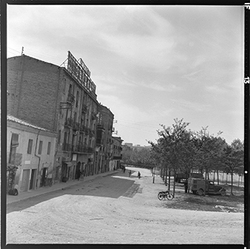 "Vista del carrer de Jaume II, amb el riu Segre a la dreta."