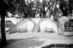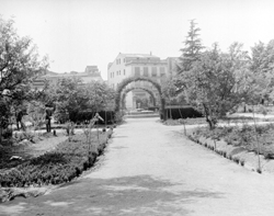 "Camps Elisis; jardins i estany; al fons les cases de l’Avinguda de les Garrigues"