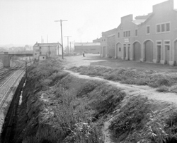 "Zona que en l’actualitat és el Segon Passeig de Ronda, sobre la via del ferrocarril propera a l’estació, vist des del pont de Torre-serona; al fons es distingeix el pont del Carrer Comtes d’Urgell"