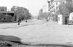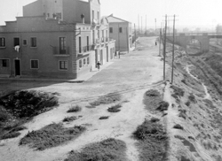 "Final de l’Avinguda de Prat de la Riba (aleshores General Mola), des del Carrer Príncep de Viana, xamfrà amb el Carrer Sant Ruf"