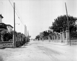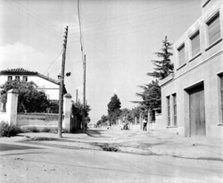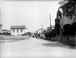 "Grup d’habitatges unifamiliars que en l’època es conegué amb el nom de Las casas Baratas ; Carrer Alfred Perenya, vist des de l’Avinguda Alcalde Porqueres, antiga carretera nacional núm. 230"