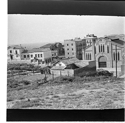 "Vista parcial des de la Seu Vella de l’antiga Costa de Rodamilans; Carrer de Sant Martí, Mercat del Pla; a la dreta, inici del Carrer Monterrey; a l’esquerra l’edifici de la Junta Provincial de Protección de Menores; Mediopensionado Santo Ángel de la Guarda"