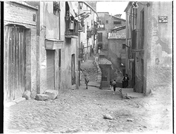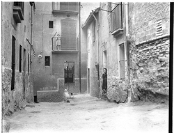 "Part alta del Canyeret; un pintor realitza pinta un racó del barri"