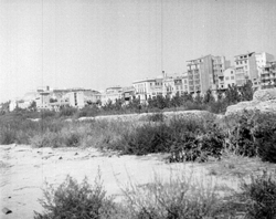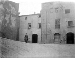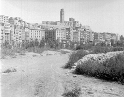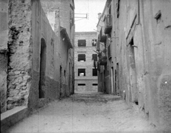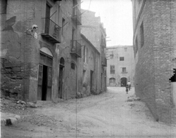 "Tram final del Carrer Borràs, amb els blocs del Seminari Vell, en construcció, al fons"