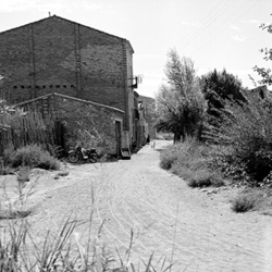 "Barri de Pardinyes; a la dreta, vista de l’antiga pujada del Camí de Corbins al pont sobre les vies del ferrocarril, a l’antiga estació de classificació ferroviària; en primer terme el Carrer Ramon Argilés; al fons el veu el dipòsit de l’antiga fàbrica de gas"