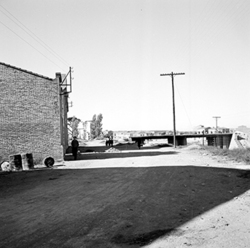 "Accés a la zona de Balàfia; Xamfrà Alfred Perenya (aleshores Carrer Eduardo Aunós, com es veu en el rètol del carrer) i Carrer de Sant Ruf i final de l’Avinguda Part de la Riba (aleshores General Mola)"