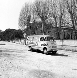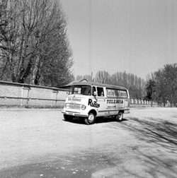 "Eduardo Velasco; concessionari oficial de vehicles Mercedes; furgoneta d’aquesta marca al Carrer Eduardo Velasco; duu publicitat de La Segarra. Embutidos y Conservas Antonio Palles. San Guim ; marca i botiga de productes càrnics i embotits de Sant Guim de Freixenet; al fons, l'Avinguda d'Alacant; barri de Cappont"