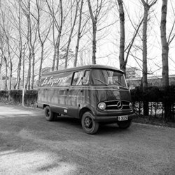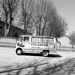 "Eduardo Velasco; concessionari oficial de vehicles Mercedes; furgoneta d’aquesta marca aparcada al Carrer Santa Cecília, al costat dels Camps Elisis, dels quals es veu una paret del Pavelló Antorxa; barri de Cappont; duu publicitat de Teleavia , iTele Balmes ; marca i botiga d'electrodomèstics, al Carrer Balmes de Lleida"