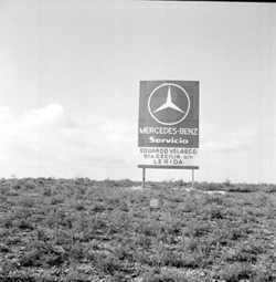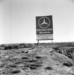 "Cartell pulicitari de la marca Eduardo Velasco, de vehicles Mercedes, annex a la carretera nacional II, terme de Lleida, partida del Tossal de Moradilla"