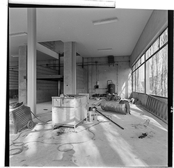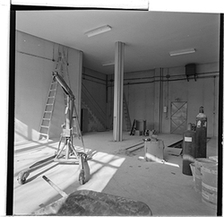 "Eduardo Velasco; concessionari oficial de vehicles Mercedes; construcció dels nous tallers, als carrers de Santa Cecília, Eduardo Velasco i Avinguda d'Alacant; vista interior"