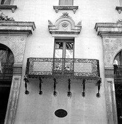 "Façana del Palau de la Diputació de Lleida, al Carrer del Carme, detall del conegut Balcó del Serraller , al centre"
