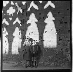 "Eduardo Velasco; concessionari oficial de vehicles Mercedes; furgoneta d’aquesta marca al Carrer Eduardo Velasco; duu publicitat de Industrias Cárnicas Baró ; marca i botiga de productes càrnics i embotits; surt de l'edifici de tallers i exposició de vehicles; xamfrà dels carrers Eduard Velasco (esquerra) i Avinguda d'Alacant; barri de Cappont; edifici actualment propietat de la Caixa de Pensions per a la Vellesa i d’Estalvis (La Caixa), seu de la Llar de Jubilats Santa Cecília"