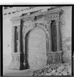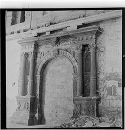 "Vista de la porta renaixentista d'accés a Santa Maria l'Antiga des del claustre de la Seu Vella"
