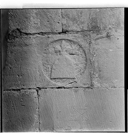 "Detall d’un escut heràldic del basament del claustre de la Seu Vella"