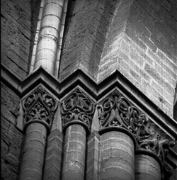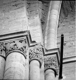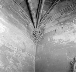 "Vista de detall d’un costat de la volta gòtica de la capella de Sant Joan Baptista de la Seu Vella"