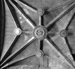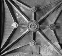 "Vista de detall de la volta gòtica de la capella de Sant Joan Baptista de la Seu Vella"