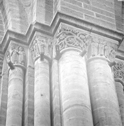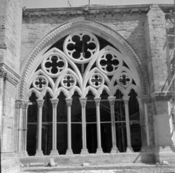 "Vista del finestrals central de l'ala est del claustre de la Seu Vella"