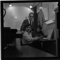 "Vista de la pujada al turó des de la Porta del Lleó a les muralles de la Seu Vella; al fons es veu el Baluard del Rei i sobre la Suda es veu l'antena de Ràdio Lleida (E. A. J. 42 RADIO LERIDA); en primer terme hi ha els jardins, coneguts actualment com de Pompeu Fabra, on a la foto es veu l'escut floral de la ciutat amb el rétol Lleida Terraferma , fet amb flors"