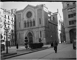 "Plaça de Sant Joan; en primer terme, l’edifici de l'Hostal del Sol i a la seva esquerra, el bar Vidal, la casa Calsone i la barreteria Barrio."