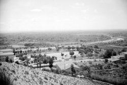 "Castell dels templers de Santa Maria de Gardeny; vista cap al sud-est; vessant del turó i muralles; al fons la zona esportiva (Camp Escolar), l’Institut de Batxillerat Màrius Torres i el riu Segre."
