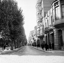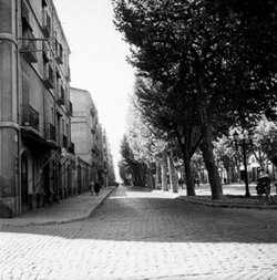 "Avinguda de Blondel; començament del Carrer del Correu Vell. Guàrdia urbà o policia local."