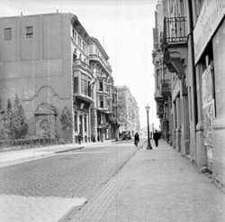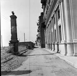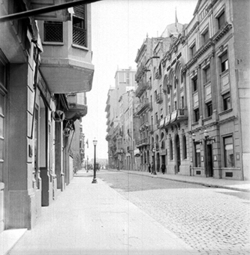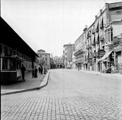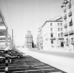 "Avinguda de Blondel i Carrer de la Vila de Foix; jardins de l'Antic Hospital de Santa Maria, seu de l'Institut d'Estudis Ilerdencs; al fons la Seu Nova.\nA la part esquerra, al costat de la Catedral, es veu la font dels Tritons que actualment es troba a la plaça on està el Bar Blasi (plaça de la Font dels Tritons).\nGuàrdia urbà o policia local"