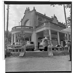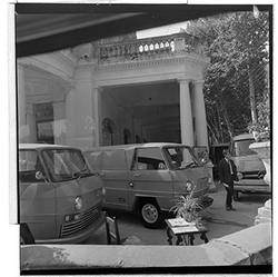 "Fira de Sant Miquel; 1963; estand de vehicles de l’empresa Eduardo Velasco S. A., concessionari oficial de la casa MERCEDES, al Xalet dels Camps Elisis"