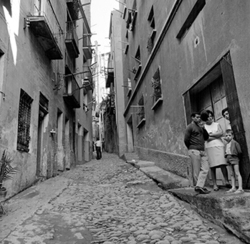 "Plaça de la Pau; al fons l'edifici del Govern Civil en construcció, amb rètol de Regiones Devastadas"