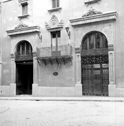 "Façana del Palau Provincial, seu de la Diputació de Lleida, amb el Balcó del Serraller"