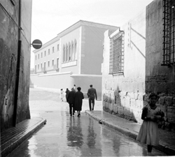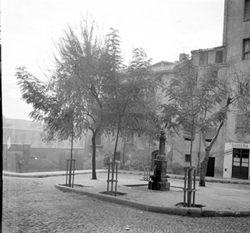 "Ruïnes del Convent de l’Ensenyança; al fons el Carrer de les Monges i la Plaça de l’Ereta"