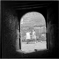 "Entrada al Pati del Miqueló, des de l'interior; unes nenes al Carrer de Sant Anastasi"