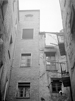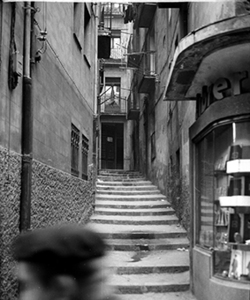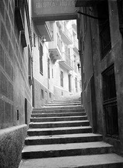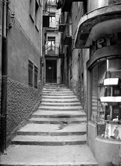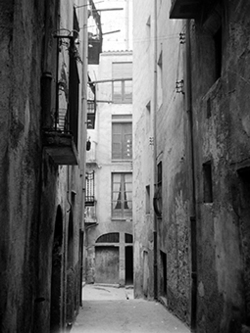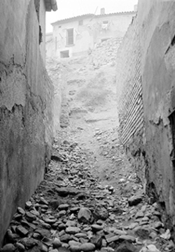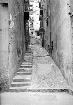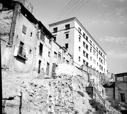 "Carrer de la Jueria i part alta de la Costa del Jan; al fons els blocs del Seminari Vell"