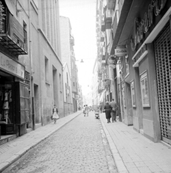 "Carrer de Sant Antoni\nFarmàcia Hellín; Pensión Niza; Almacenes S. Luis i S.Ribes; Jabon en"