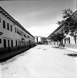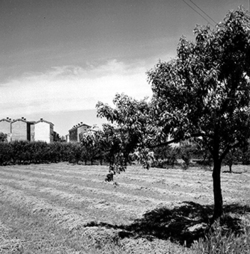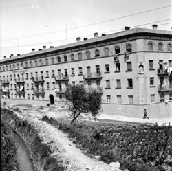 "Vessant del Turó de Gardeny; en primer terme els blocs militars, al Carrer Cardenal Cisneros"