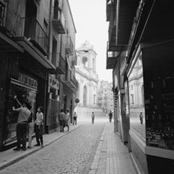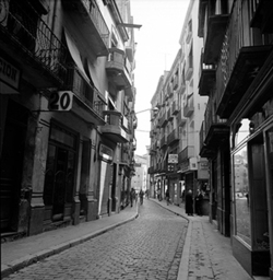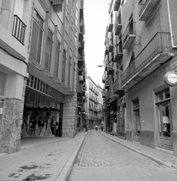 "Carrer de Sant Antoni; al fons la Plaça de la Catedral\nCarniceria; Duch; Farmàcia Hellín; "