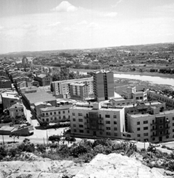 "Castell dels templers de Santa Maria de Gardeny; vista cap al nord-est; vessant del turó i sector del Carrer Alcalde Costa, xamfrà amb l'actual Passeig de Ronda i el Carrer Isaac Albéniz (Plaça de l'Exèrcit), Avinguda de Madrid i riu Segre"