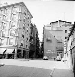 "Plaça de la Catedral; al fons el Carrer de Sant Antoni\nMobles Sentís; Erly; Otto sastre"