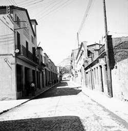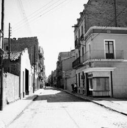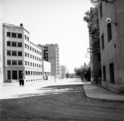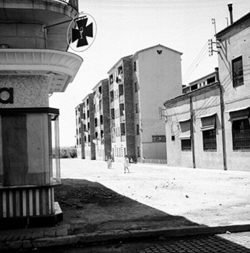 "Blocs Militars, al peu del Turó de Gardeny i Avinguda de Madrid; a l'esquerra l'antiga Residencia de Oficiales"