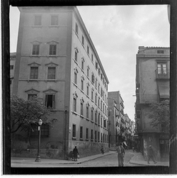 "Avinguda de Catalunya, xamfrà amb el Carrer Acadèmia des del carrer de Sant Antoni.\nCAFÈ CATALUÑA"