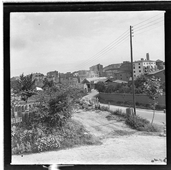 "Final del Carrer Acadèmia, convertit ja en la Carretera Nacional II; al peu del Turó de Gardeny"