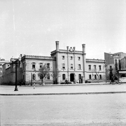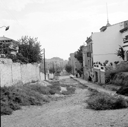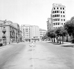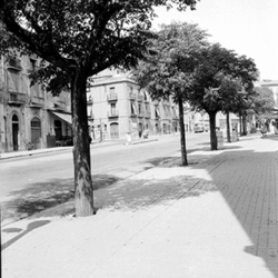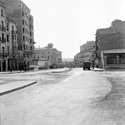 "Avinguda de Catalunya, des de la part alta, xamfrà amb la Rambla d'Aragó; a l’esquerra, la l’antiga Residència Juana Jugán, de les Germanetes dels Pobres; a la dreta, un camió aparcat"