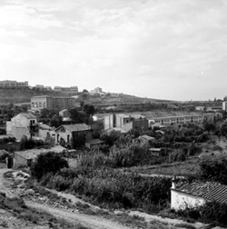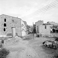 "Castell dels templers de Santa Maria de Gardeny; vista des de la zona del Passeig de Ronda, o de la Serreta, a tocar amb el Carrer Lluís Companys (Plaça dels Pagesos?)"