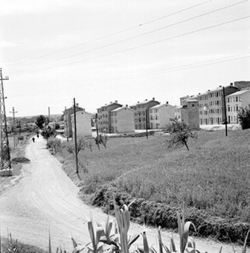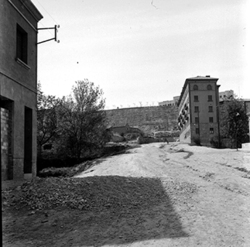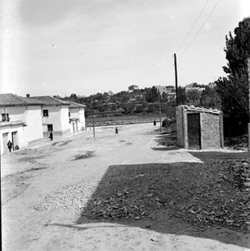"Pujada del Carrer de Saturn; a l'esquerra l'inici dels carrers Lluís Milet i Manuel de Falla"