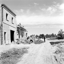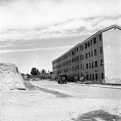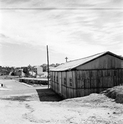 "Camí (Carrer) de la Mariola; construcció provisional de la parròquia de Sant Pau. Festa de fusta.\n"