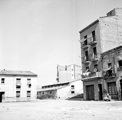"Carrer de les Torres de Sanuí, des del Carrer Balmes; a l’esquerra es veu la tanca de l’antic Asilo Borràs, posteriorment Jardins de Pau Casals"