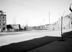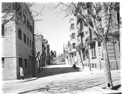 "Carrer Bisbe Messeguer, des de la Rambla d’Aragó; a la dreta hi ha l’edifici del Seminari; al fons a l’esquerra, la Clínica Perpetuo Socorro"