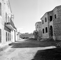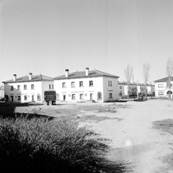 "Grup d’habitatges unifamiliars que en l’època es conegué amb el nom de Grupo 3 de abril ; zona al voltant del Carrer Magí Morera, amb el futur Passeig de Ronda al fons"
