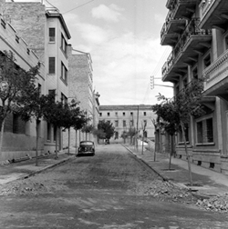"El Carrer Canonge Brugulat; a l’esquerra hi ha el Carrer Alcalde Sol; al fons es veu la Rambla d’Aragó"