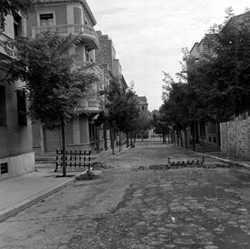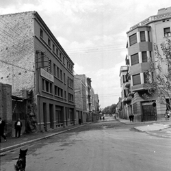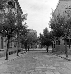 "El Carrer Alcalde Sol, des del Carrer Canonge Brugulat; al fons es veu l’edifici del Seminari i el Carrer Bisbe Messeguer"