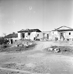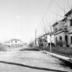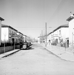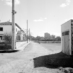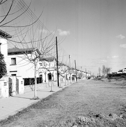 "Grup d’habitatges unifamiliars que en l’època es conegué amb el nom de Grupo 3 de abril ; Carrer Magí Morera, segurament vist des de l’actual Avinguda Alcalde Rovira Roure"